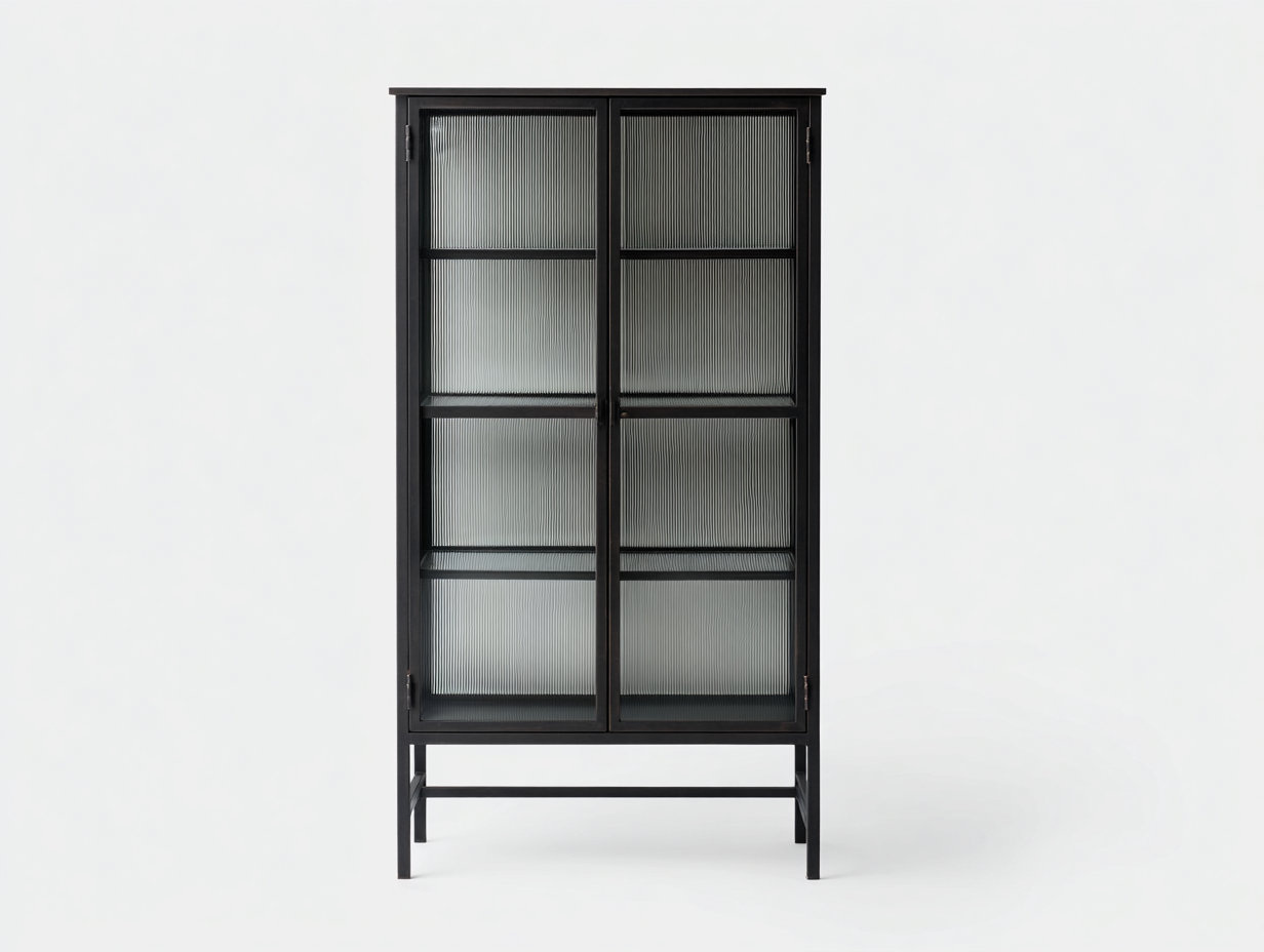 Bibliothèque vitrée - métal noir avec verre strié - 90x40x180 cm - noir - style industriel