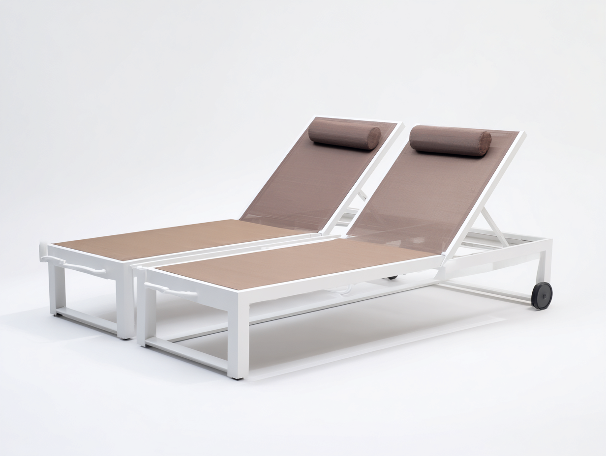 Transat de jardin - lot de 2 bains de soleil aluminium et textile 192x68x34 cm avec roues - blanc/beige - style contemporain
