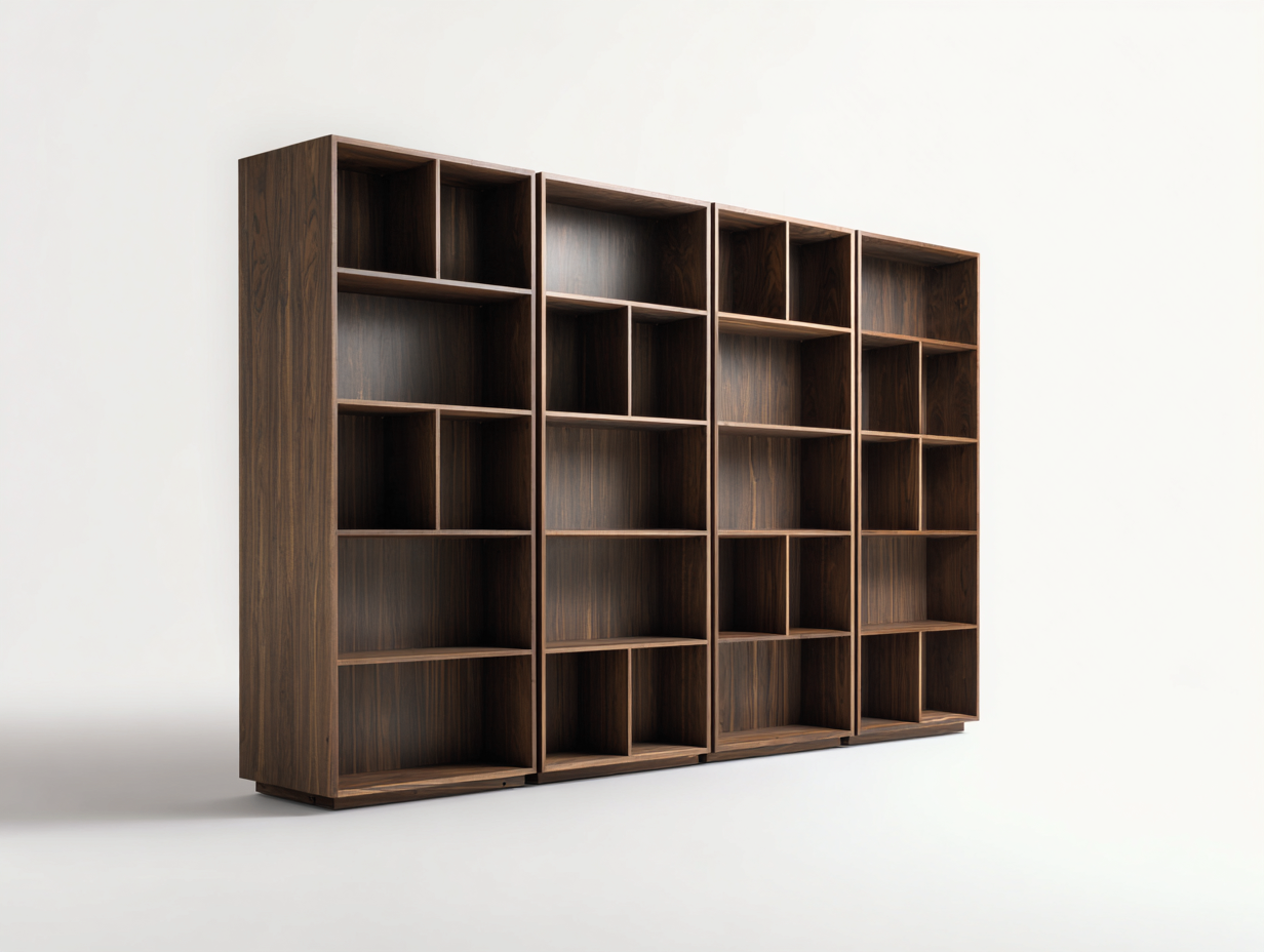 Cette bibliothèque modulaire au design contemporain offre une solution de rangement spacieuse et élégante. Sa structure en bois foncé apporte une touche chaleureuse et sophistiquée à votre intérieur.